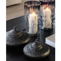 Fiora är en rund dekorationsask i metall från Artwood. Asken med den strukturerad ytan blir ett vackert blickfång samtidigt som den passar för en liten förvaring för t.ex. värmeljus, tändstickor, nycklar, fjärrkontroller m.m.