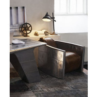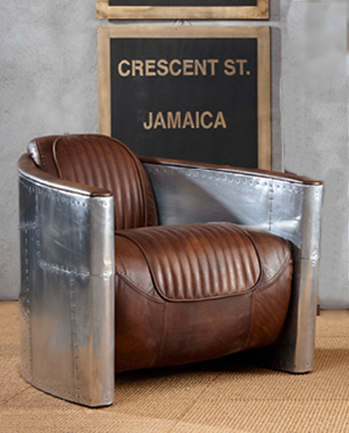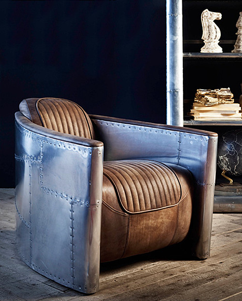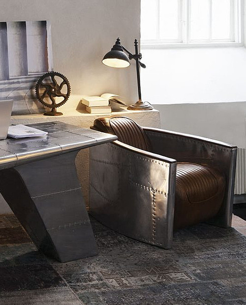 Tomcat Aviator är en unik skinnfåtölj som kombinerar rå industriell design med tidlös komfort. Fåtöljens ram är klädd i nitad aluminiumplåt i färgen Spitfire och det specialbehandlade lädret har en lätt sliten finish, vilket framhäver fåtöljens karaktärsfulla utseende.
