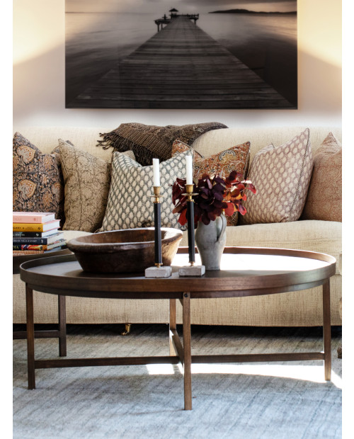 Den handgjorda tekniken ger mönstret sitt levande och dekorativa uttryck. Ett hantverk som gör varje kuddfodral unikt.