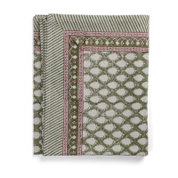 Mönstret är handtryckt med träblock i traditionell indisk blockprintteknik.
