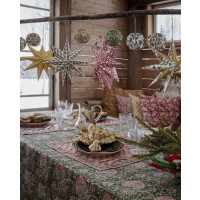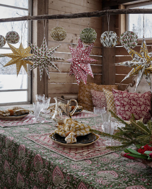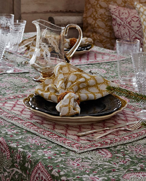 Det vackra mönstret är handtryckt med träblock i traditionell indisk blockprintteknik. Den handgjorda tekniken ger mönstret sitt levande och dekorativa uttryck. Ett hantverk som gör varje bordstablett unik.
