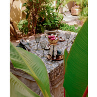 Parrot är en vacker bordsduk i naturlig linne från Chamois. Mönstret är handtryckt med träblock i traditionell indisk blockprintteknik.