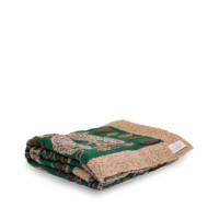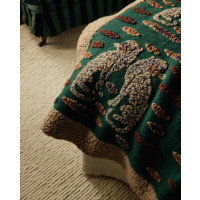 Leopard är en elegant och lyxig pläd med ett lekfullt, iögonfallande jacquardvävt mönster av leoparder. Pläden är tillverkad av 80% ull och 20% polyester, och den har genomgått en behandling där materialen blandas med varmt vatten, vilket har fått ullen att krympa och bli filtad. Resultatet är en värmande pläd som är både kompakt och lyxigt lätt i känslan.