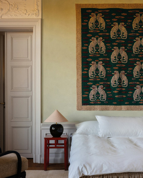 Förutom att svepa in sig i pläden passar den perfekt som sängöverkast vid fotändan av sängen eller som ett vackert blickfång på väggen. Tillverkad i Italien.