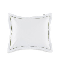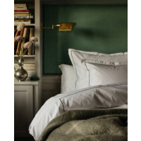 Designen är elegant och sofistikerad med dekorativ brodyr i ram runt både påslakan och örngott. Örngottet är sytt med en 4 cm vinge och överlappning på baksidan. Bädda gärna med många kuddar för ett vackert och ombonat intryck.