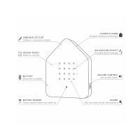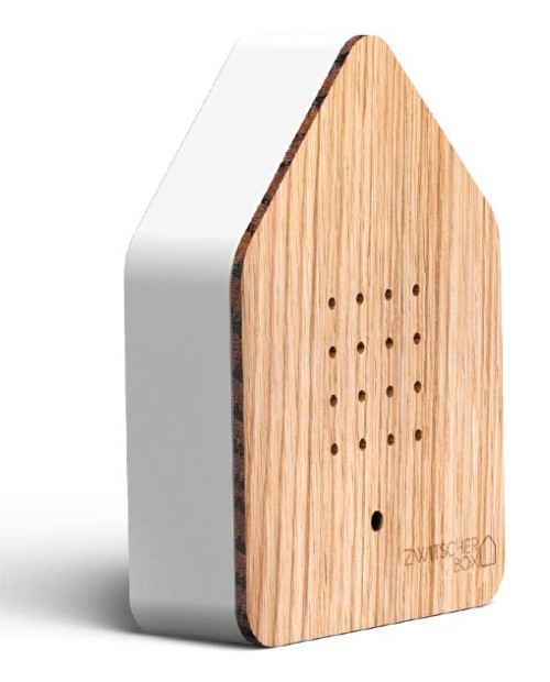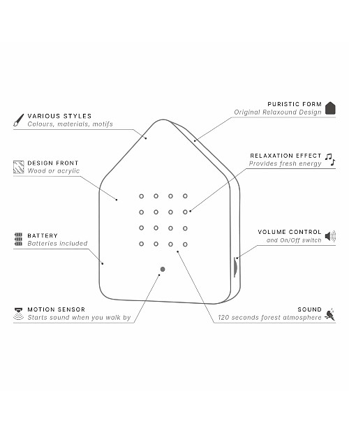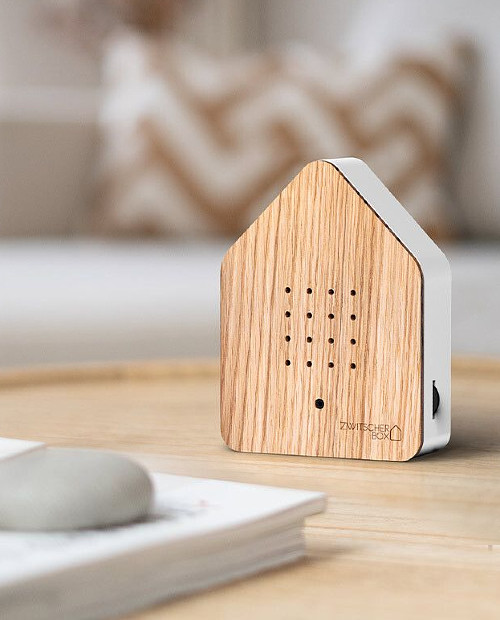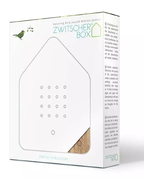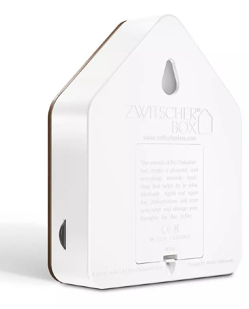 Du aktiverar fågelkonserten när du passerar den och om ingen ny impuls följer tonar den ut efter två minuter. Oavsett om du har den hemma eller på kontoret, i badrummet eller i hallen kan du placera din speldosa var som helst eller hänga upp den på väggen.