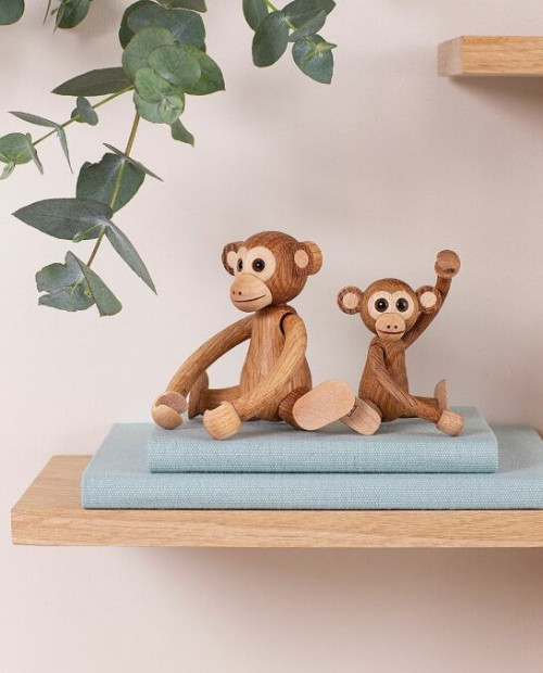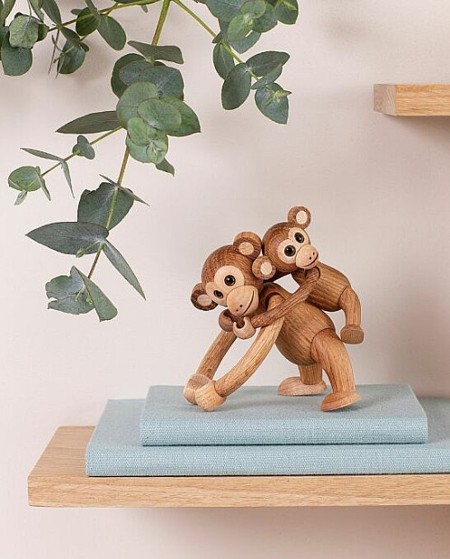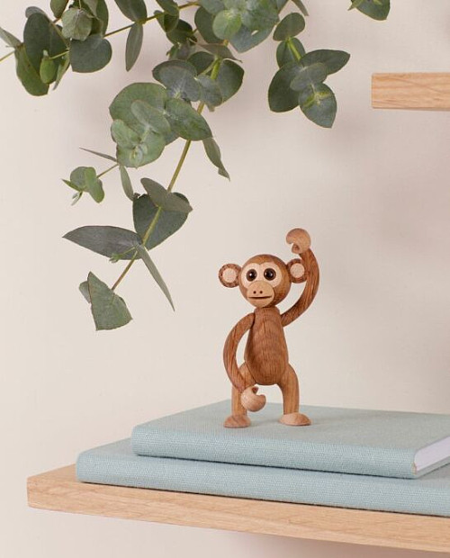 Swing är en söt, dekorativ dekorativ träfigur, designad av Chresten Sommer för Spring Copenhagen. Händrna är desinade så att apan kan gripa om sladdar på ett lekfullt sätt. Perfekt som present, dop-present eller julklapp. Eller ett tillskott till din egen samling av trädjur.